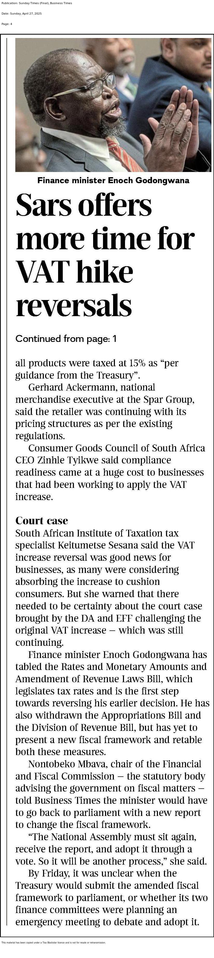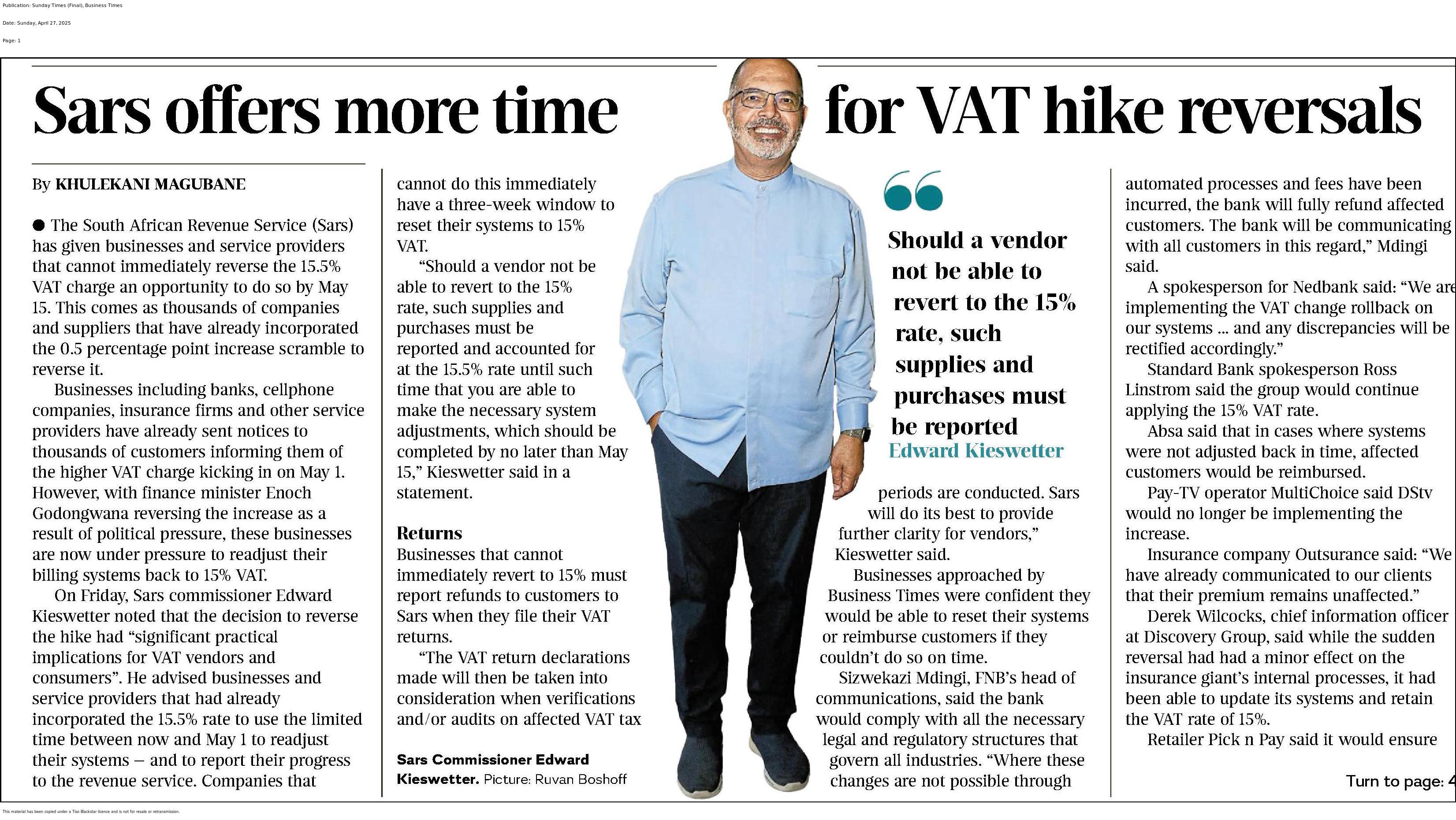 Sars offers more time for VAT hike reversals