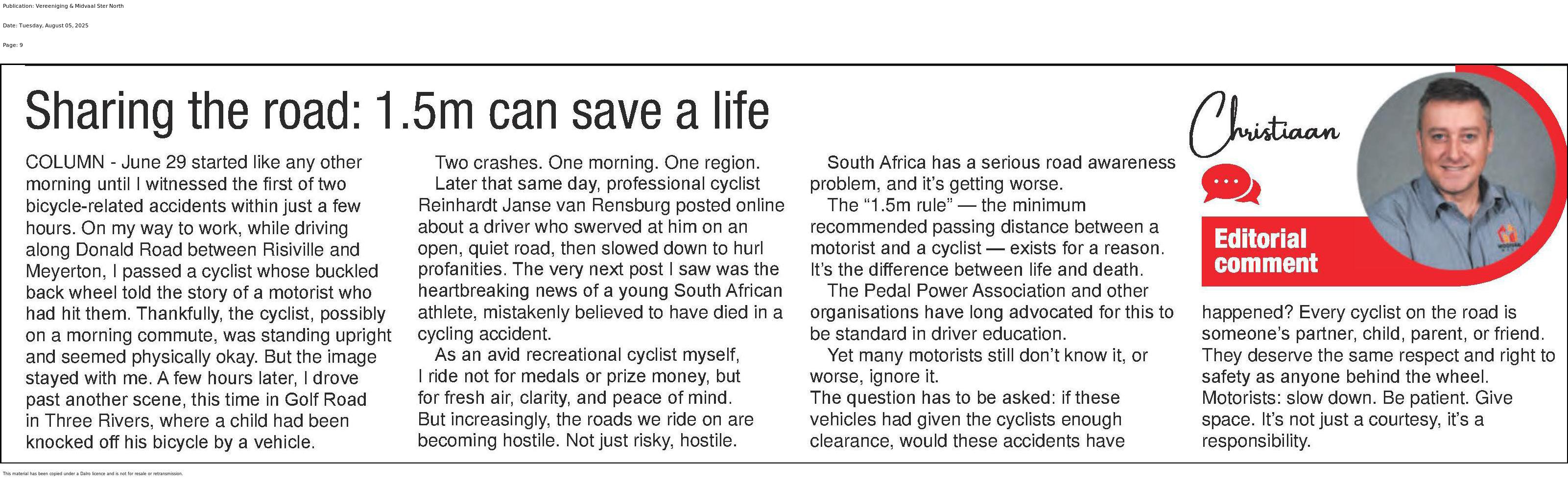 Sharing the road: 1.5m can save a life